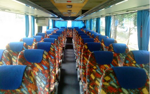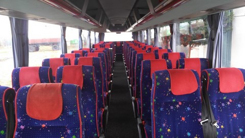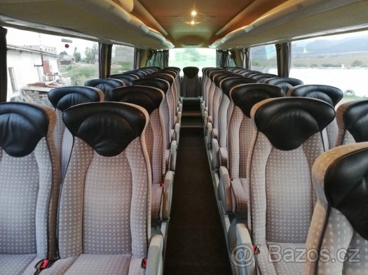 49 míst,Pásy na všech sedadlech , 2xTV ,DVD ,klimatizace ,mikrofon ,lednice ,kávovar ,WC ,polohovatelné sedačky