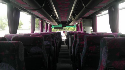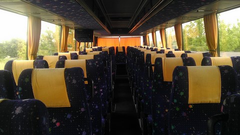 53 míst, 2xTV ,DVD ,klimatizace ,mikrofon ,lednice ,kávovar ,WC ,polohovatelné sedačky s odskokem