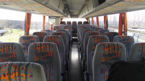 53 míst, 2xTV ,DVD ,klimatizace ,mikrofon ,lednice ,kávovar ,WC ,polohovatelné sedačky s odskokem