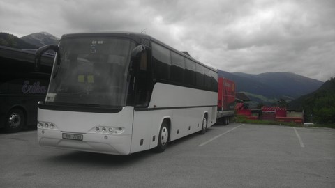 49 míst, 2xTV, bezpečnostní pásy, DVD, klimatizace, mikrofon, lednice, kávovar, WC, polohovatelné sedačky s odskokem