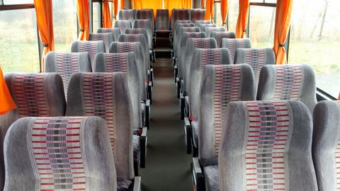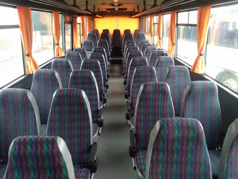 49 míst,Pásy na všech sedadlech , 2xTV ,DVD ,klimatizace ,mikrofon ,lednice ,kávovar ,WC ,polohovatelné sedačky